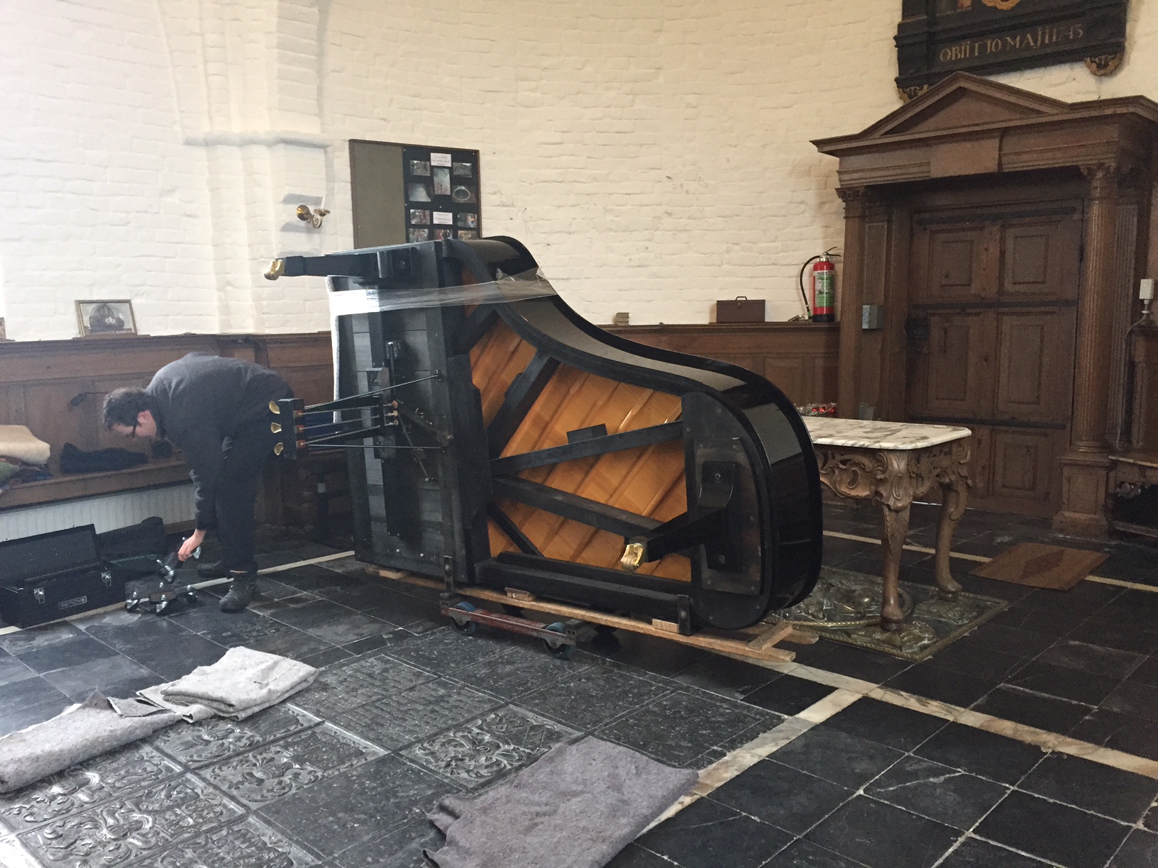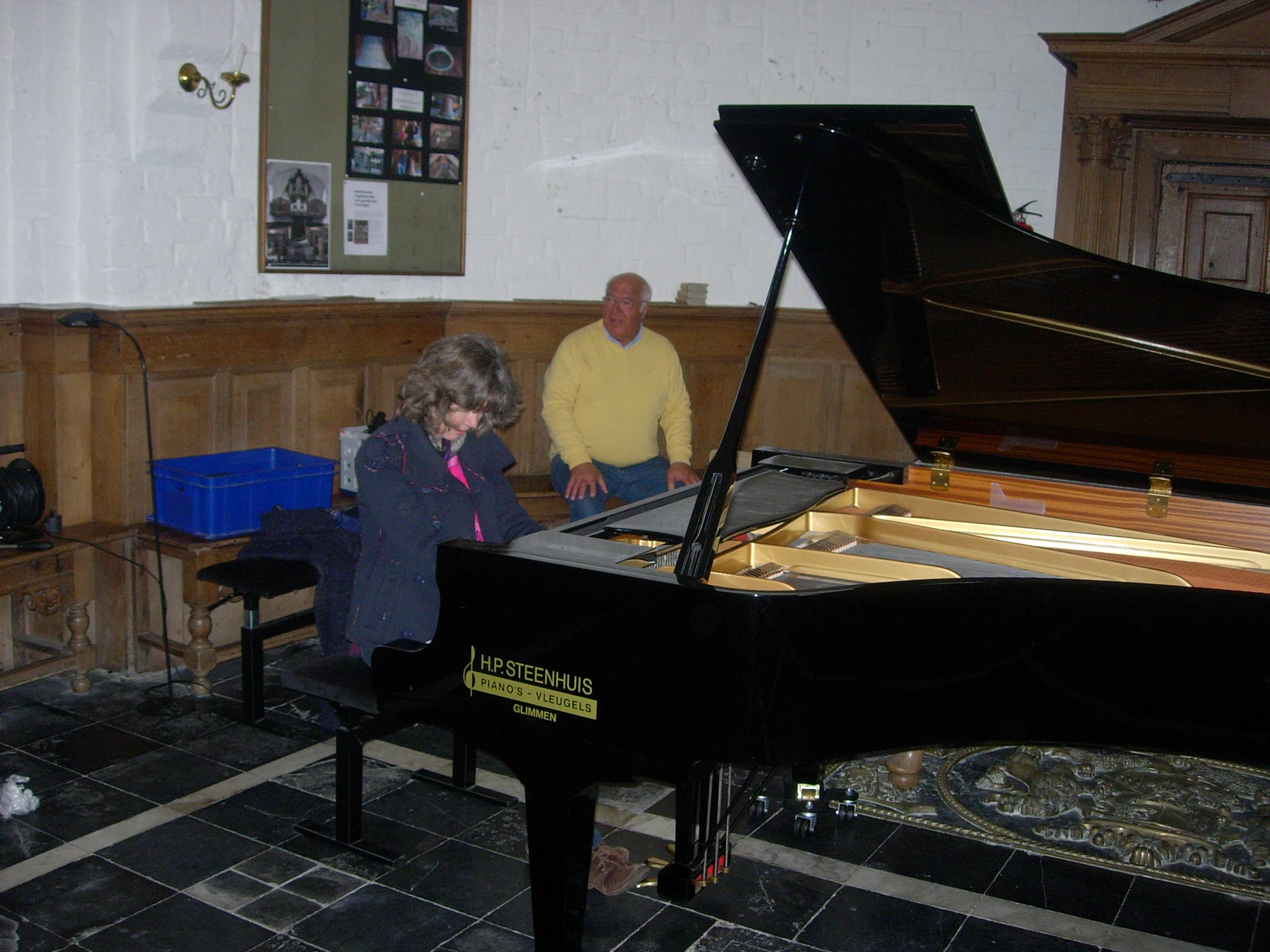 Op maandagmorgen 23 februari stond al vroeg de wagen van de firma Steenhuis piano’s en vleugels voor de prachtige dorpskerk in Zandeweer. De vleugel werd naar binnen gebracht door de nauwe kerkingang en werd opgesteld in het koor van de kerk. Even later arriveerde Michiel Megens met de opnameapparatuur. Alles werd in gereedheid gebracht.