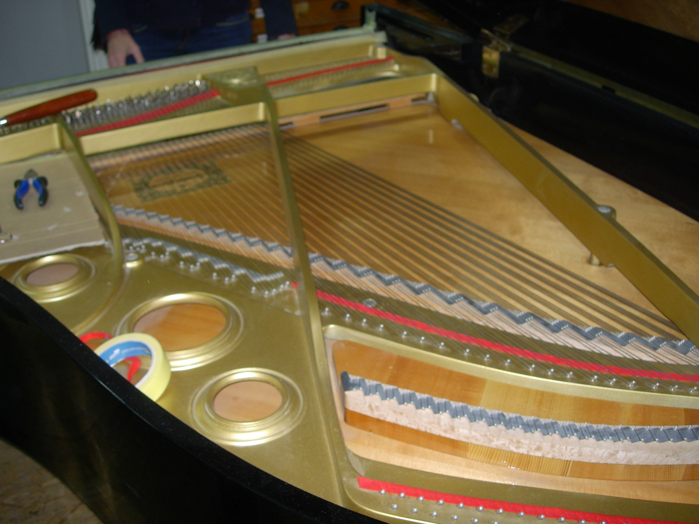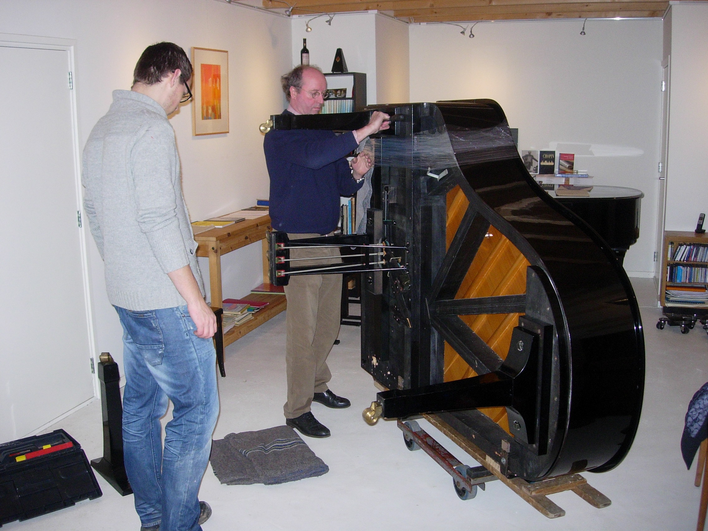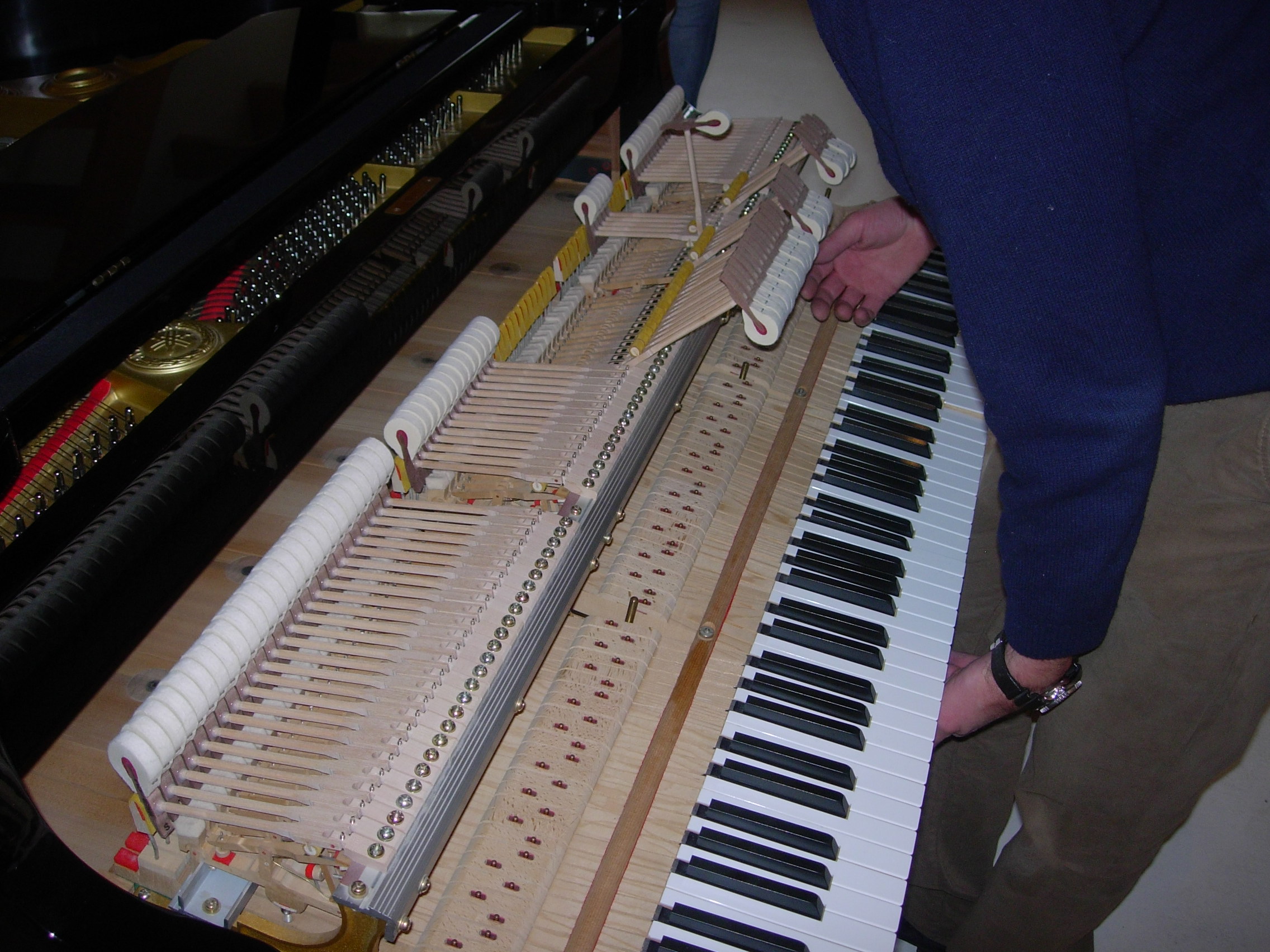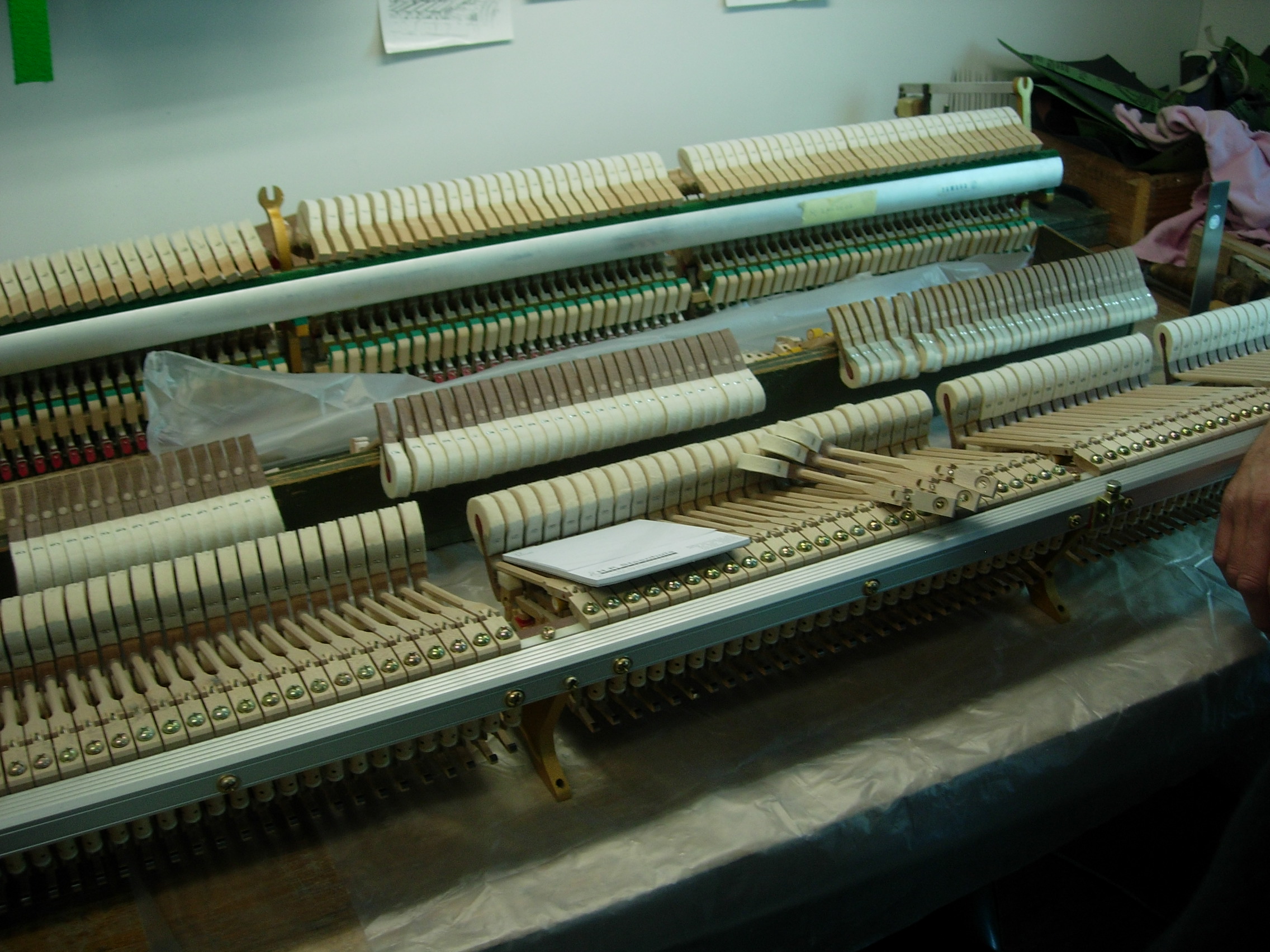 Naast het regelmatig stemmen van de vleugel is het nodig om het instrument een grondige onderhoudsbeurt te geven. In de loop der jaren heeft mijn Yamaha vleugel al wat veranderingen ondergaan. Een aantal malen zijn de hamerkoppen vervangen. Ook is het instrument al een paar keer opnieuw geïntoneerd en is het mechaniek afgeregeld. In september 2012 was het tijd voor een volledige revisie. Dit hield in dat alle snaren zijn vervangen, nieuwe stemknoppen geplaatst, hamerkoppen vervangen en er zijn nieuwe vangertjes in het mechaniek geplaatst. Voor zo’n uitgebreide revisie ging de de vleugel naar de werkplaats bij de firma Steenhuis. Daar zijn vakmensen aan het werk zoals Jan Koning, Wim Hoving en Jaap Walters. Na lange tijd kwam de vleugel weer als nieuw in mijn studio.