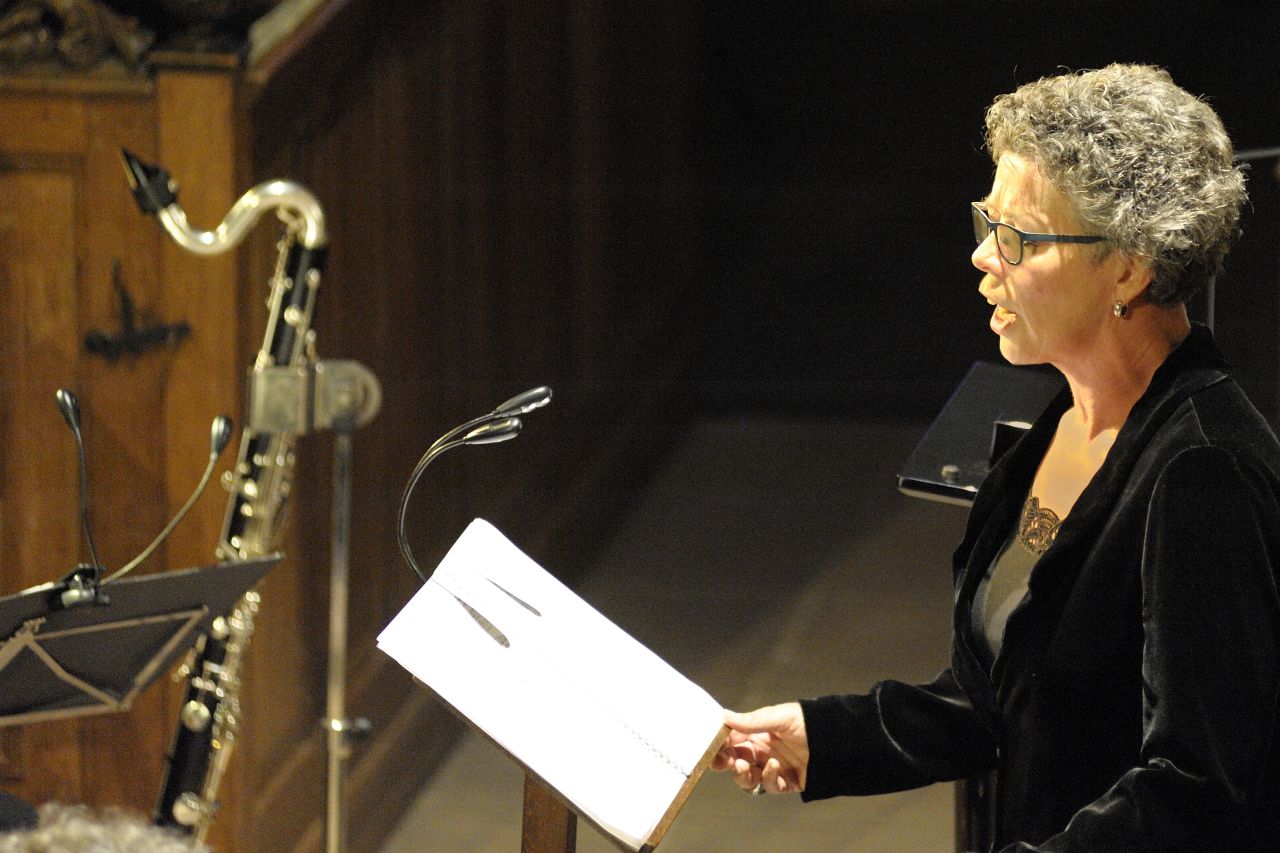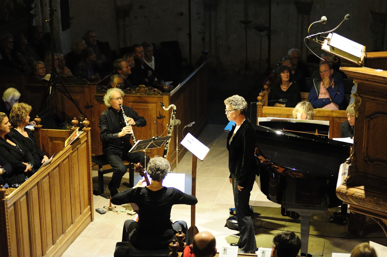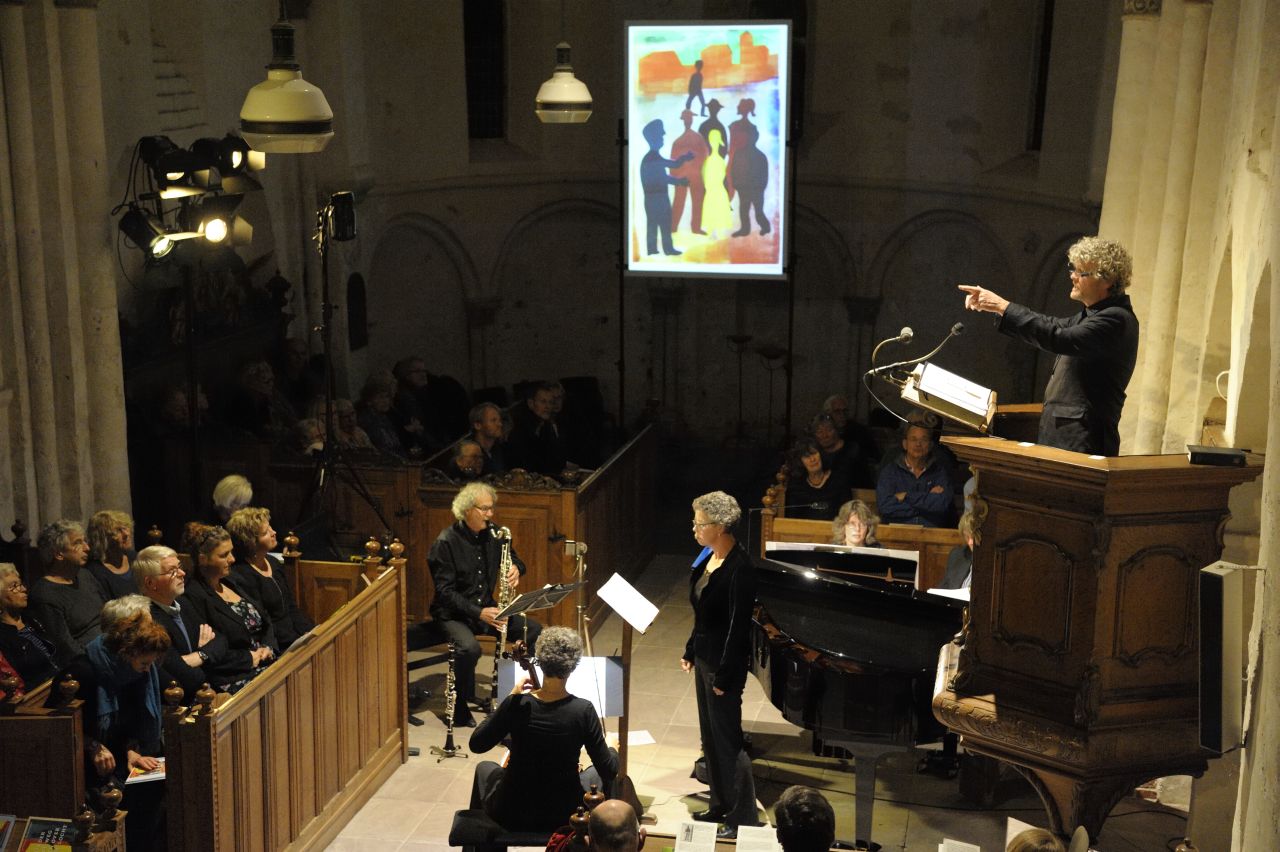 In een uitverkochte en zeer sfeervolle kerk hield Ellen Dijkhuizen haar inleiding over de Chassidische legenden en achtergronden bij de liederen voordat de cyclus in zijn geheel werd uitgevoerd.