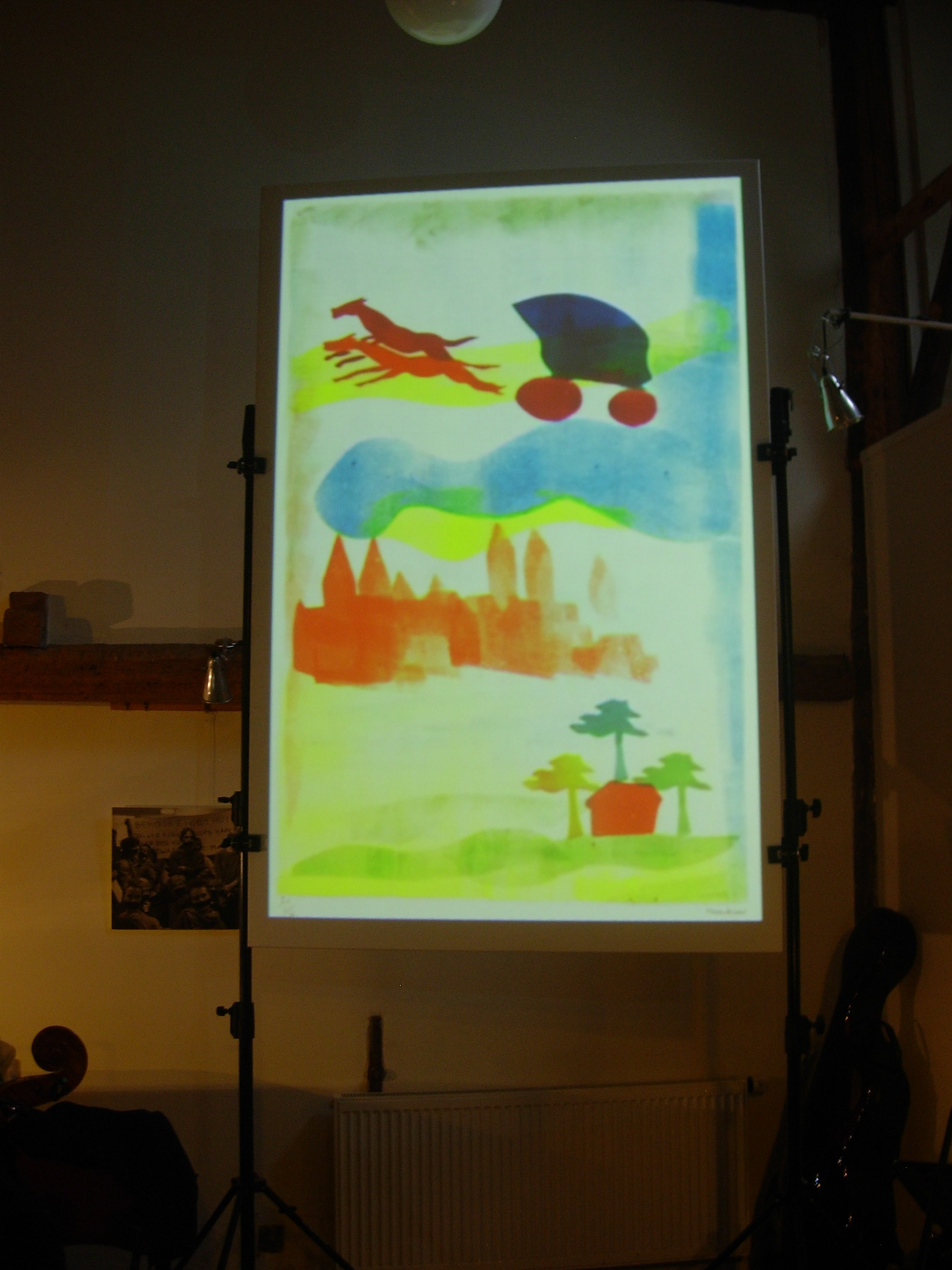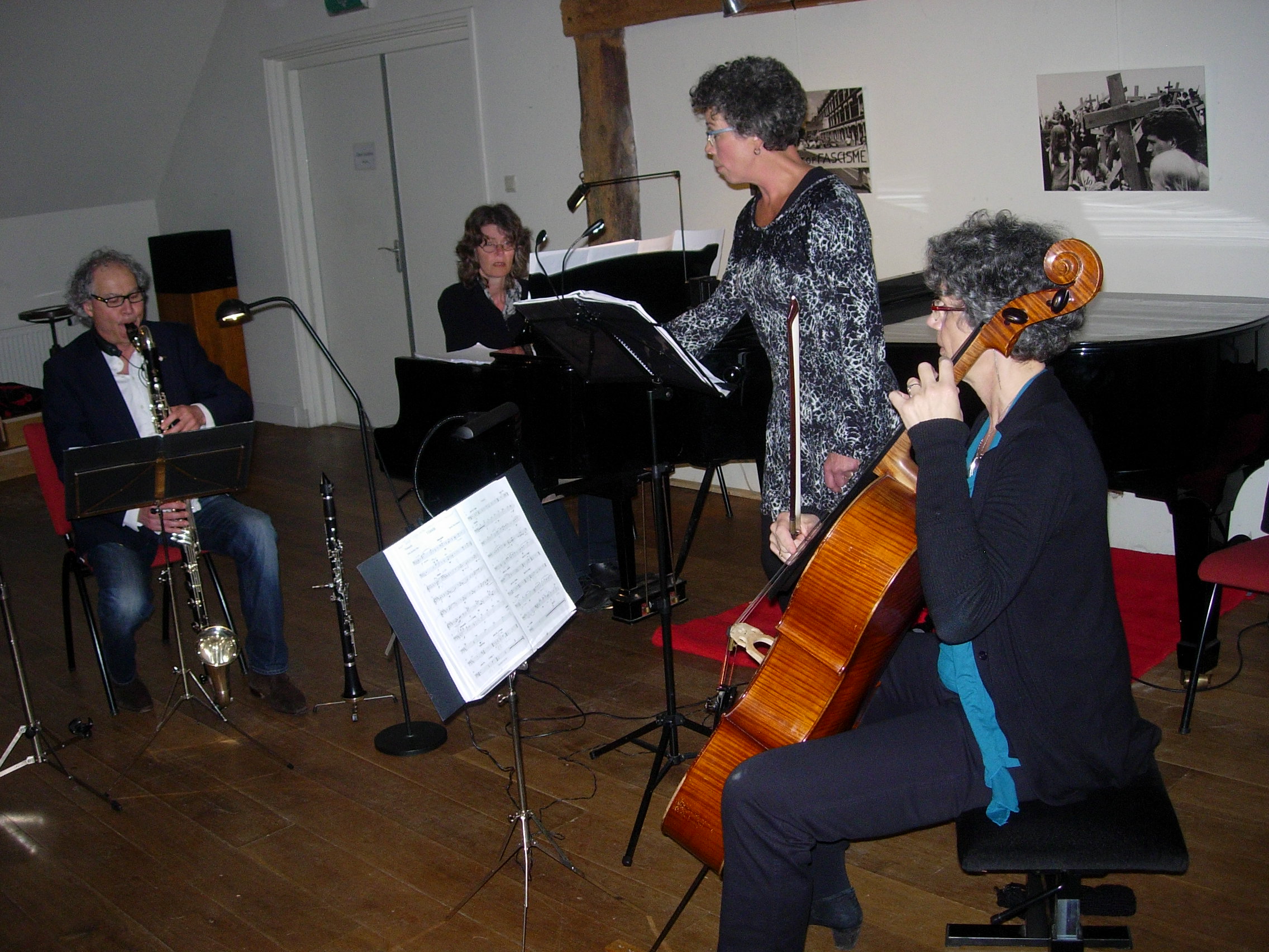 De gehele liederencyclus werd integraal uitgevoerd door Netty Otter, mezzosopraan- Ben Smit, spreekstem – Pierre Lafay, (bas) klarinet, Wilma van der Wardt, cello en Ellen Dijkhuizen, piano. De projecties werden verzorgd door Jaap van den Hoofdakker. De inleiding over de chassidische legenden en Werkman werd gegeven door prof.dr. Wout van Bekkum.